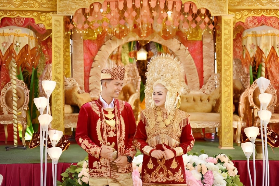 PENGANTIN MINANGKABAU: Marapulai dan anak daro di pelaminan saat acara pernikahan.