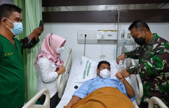 Ilustrasi tangkapan KSAD Jenderal TNI Andika Perkasa menyemangati prajurit usai tertembak KKB dan dirawat di RSPAD Gatot Soebroto Jakarta. Muhammad Zulfikar/Antara