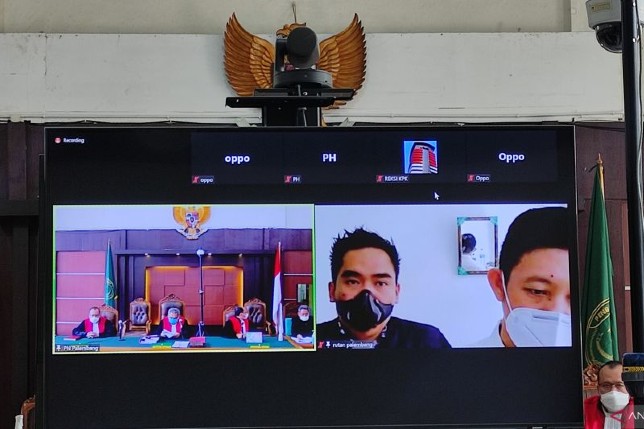 Terdakwa Suhandy mendengarkan vonis dari majelis hakim Pengadilan Negeri Palembang, Sumatera Selatan, Selasa (15/3). M. Riezko Bima Elko P./Antara