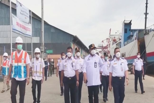 Kepala Biro Perencanaan Setjen Kementerian Perhubungan Robby Kurniawan melakukan pemantauan arus penumpang mudik di Pelabuhan Trisakti Banjarmasin. KSOP/Antara