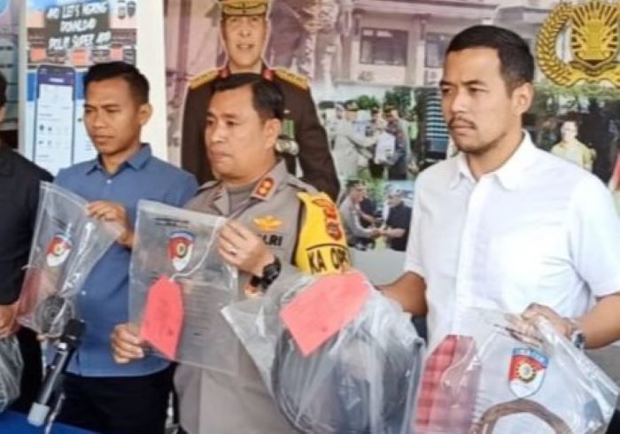 Kapolres Gianyar AKBP Ketut Widiada (tengah) menunjukkan barang bukti kasus jatuhnya lift Ayu Terra Resort Ubud di Polres Gianyar, Bali, Selasa (26/9).