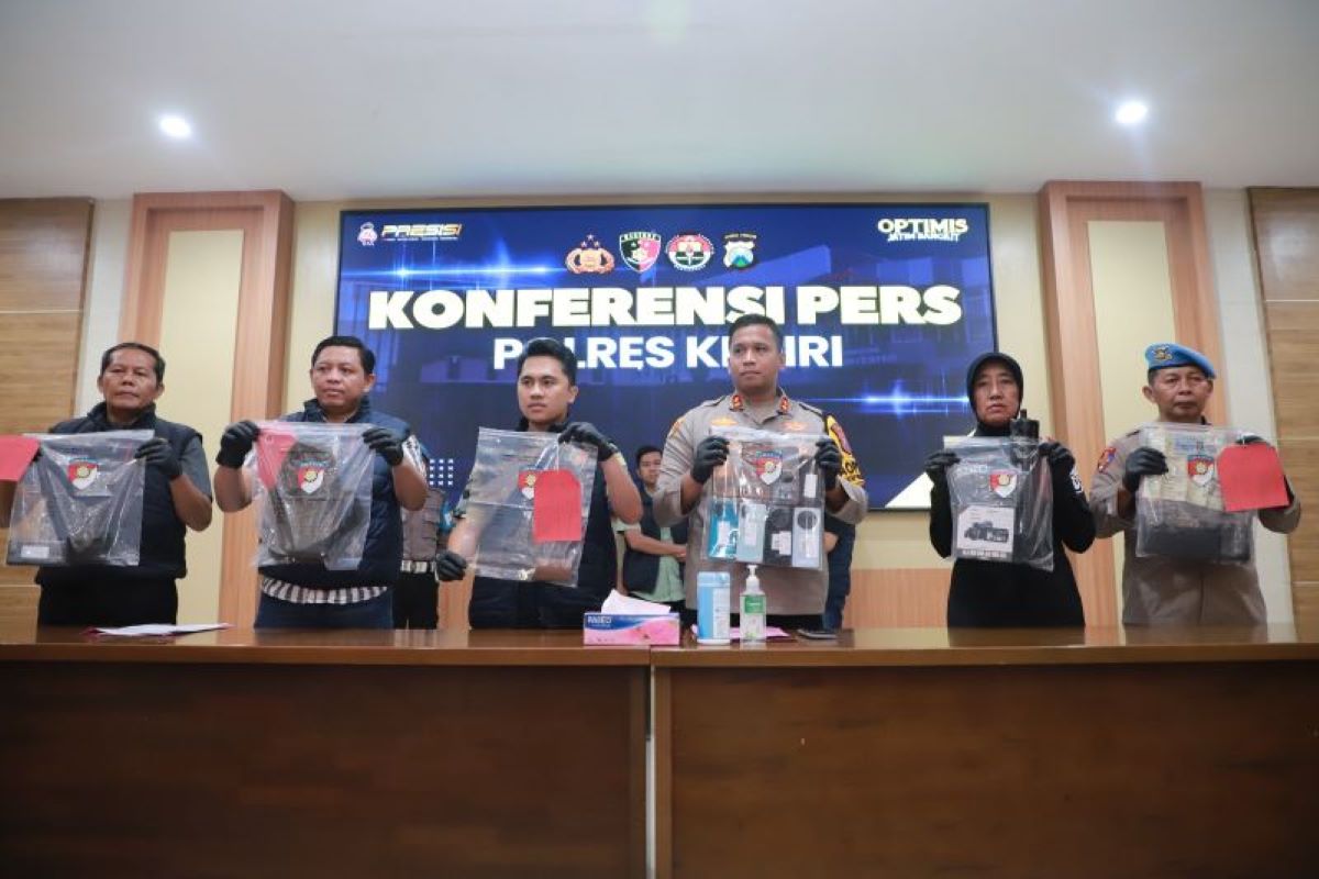 Polres Kediri saat ungkap kasus pembunuhan sekeluarga di Desa Pandantoyo, Kecamatan Ngancar, Kabupaten Kediri, Jumat (6/12). (Polres Kediri/Antara)