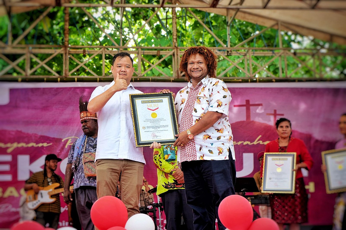 Provinsi Papua Barat Daya raih rekor Muri pembagian telur paskah terbanyak, 10.000 telur paskah. ( Istimewa)