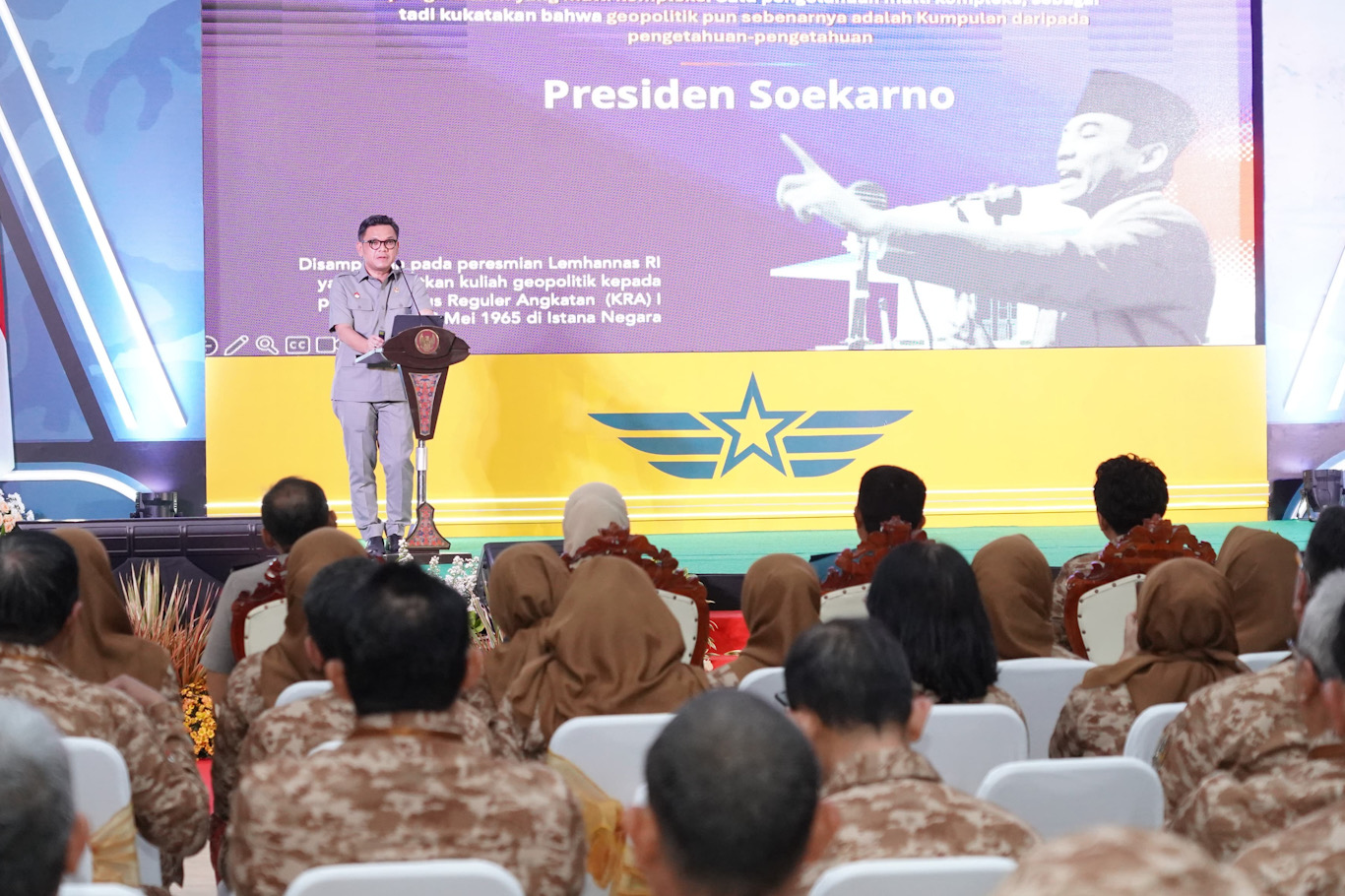 Gubernur Lemhanas Ace Hasan saat menjadi pembicara di Jatim Retreat. (Lemhanas)