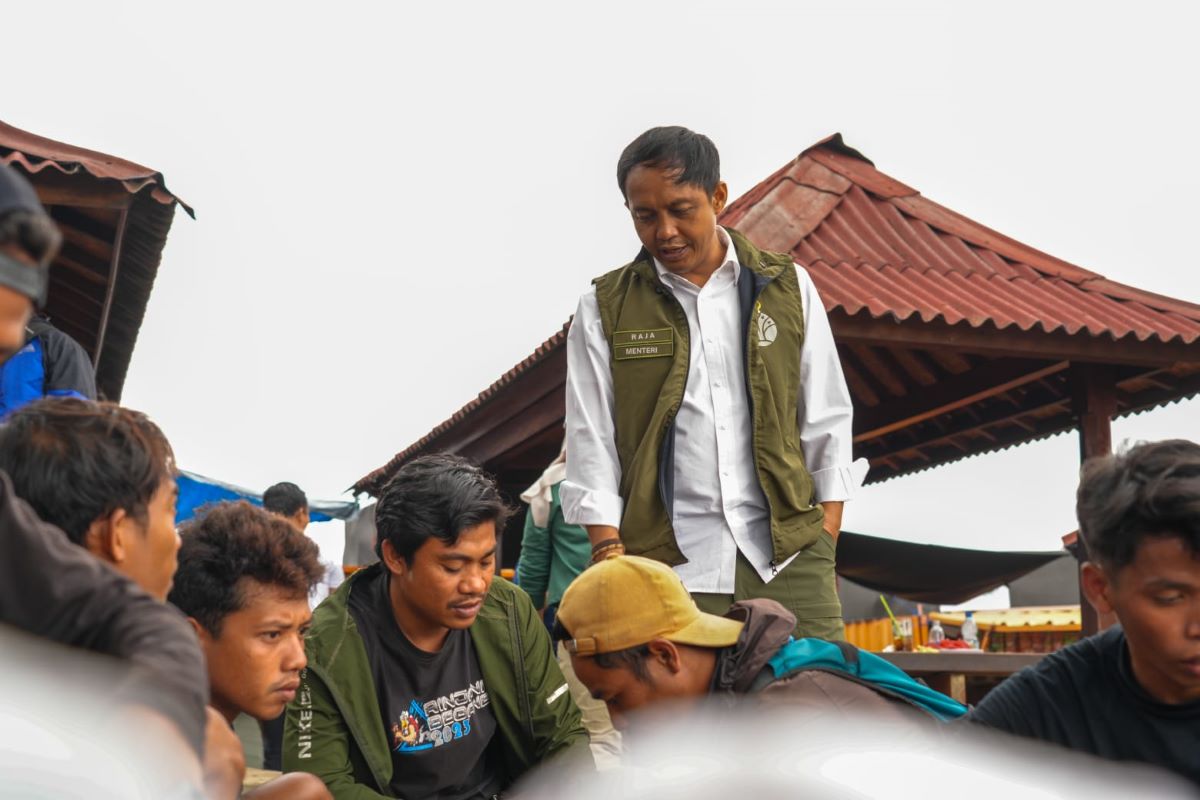 Menteri Kehutanan (Menhut) Raja Juli Antoni melakukan pengecekan barang bawaan para pendaki Gunung Rinjani. (Humas Kememhut)