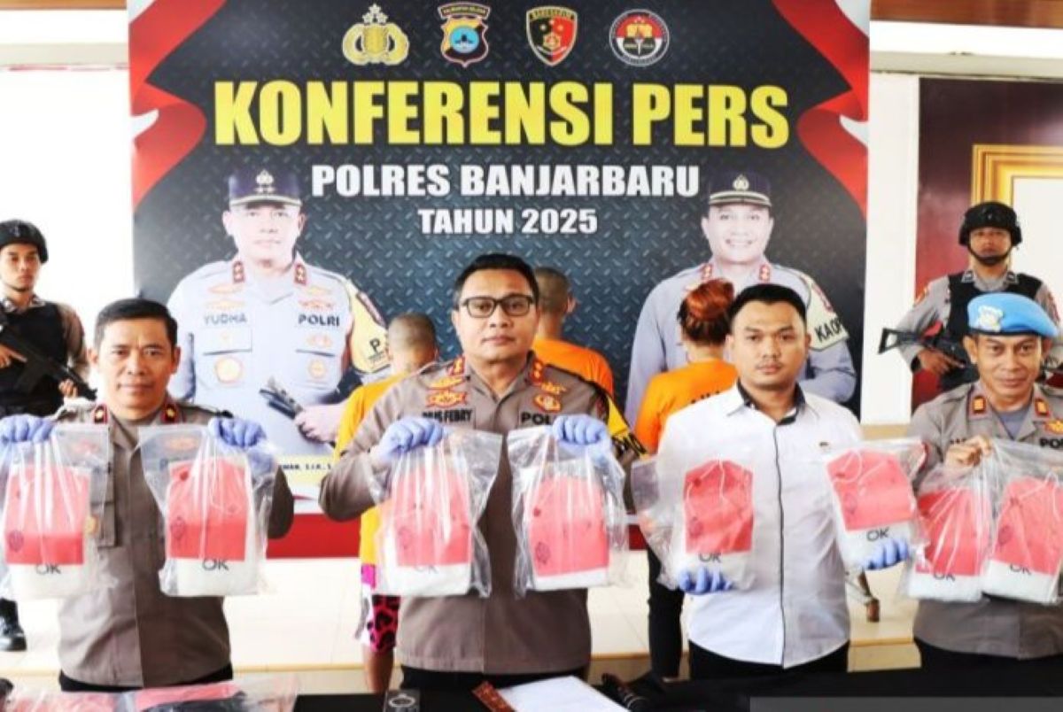 Polresta Banjarbaru ungkap kasus peredaran sabu-sabu seberat 10,3 kg dan menangkap tiga tersangka. (Yose Rizal/Antara)