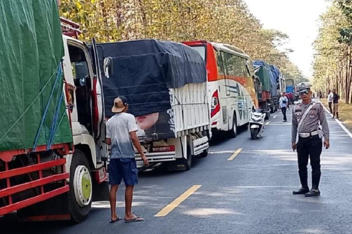 Petugas Satlantas Polres Situbondo melakukan penertiban di jalur pantura kawasan Taman Nasional Baluran. Kamis (24/7). (Pos Lantas Baluran Situbondo/Antara)