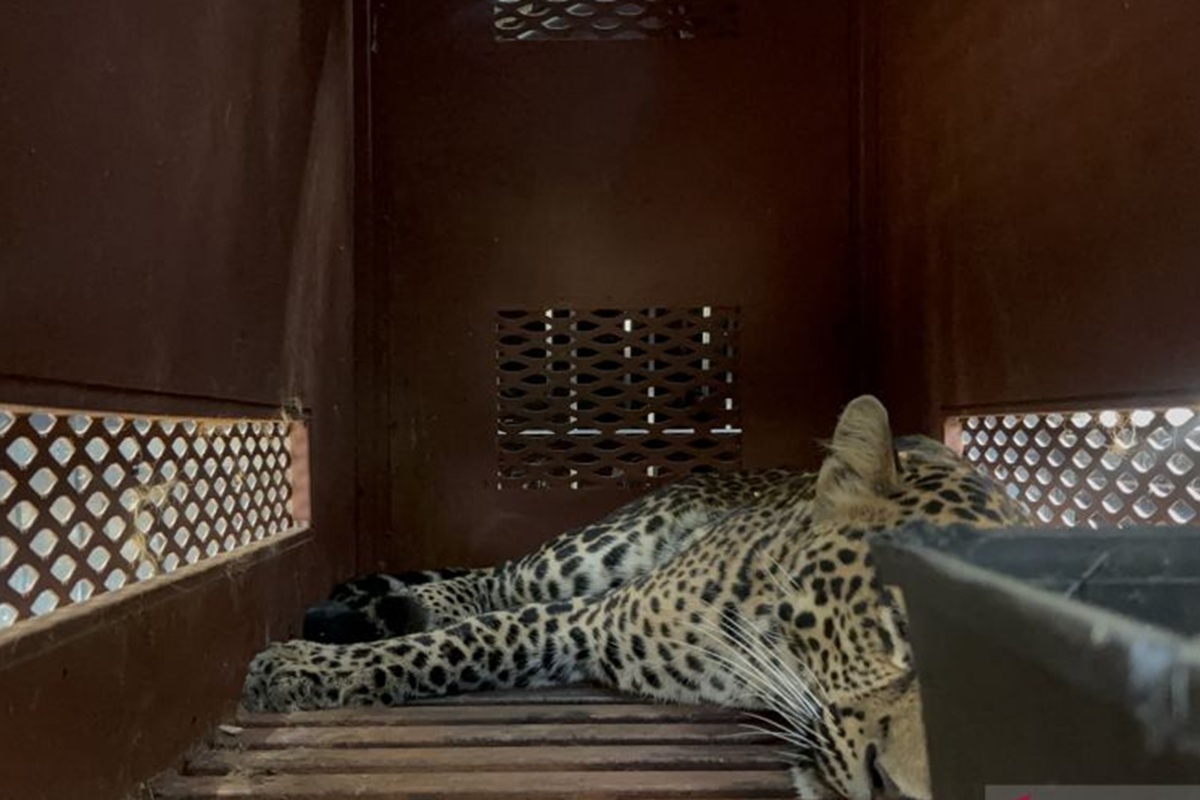Seekor macan tutul yang masuk ke dalam Hotel Anugerah, Jalan Padasaluyu, Kecamatan Sukasari, Kota Bandung, berhasil dievakuasi. (ANTARA)