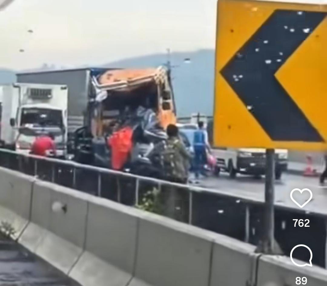 Kecelakaan beruntun Kembali terjadi di Tol Purbaleunyi arah Jakarta, Selasa (2/12) siang. (Instagram)