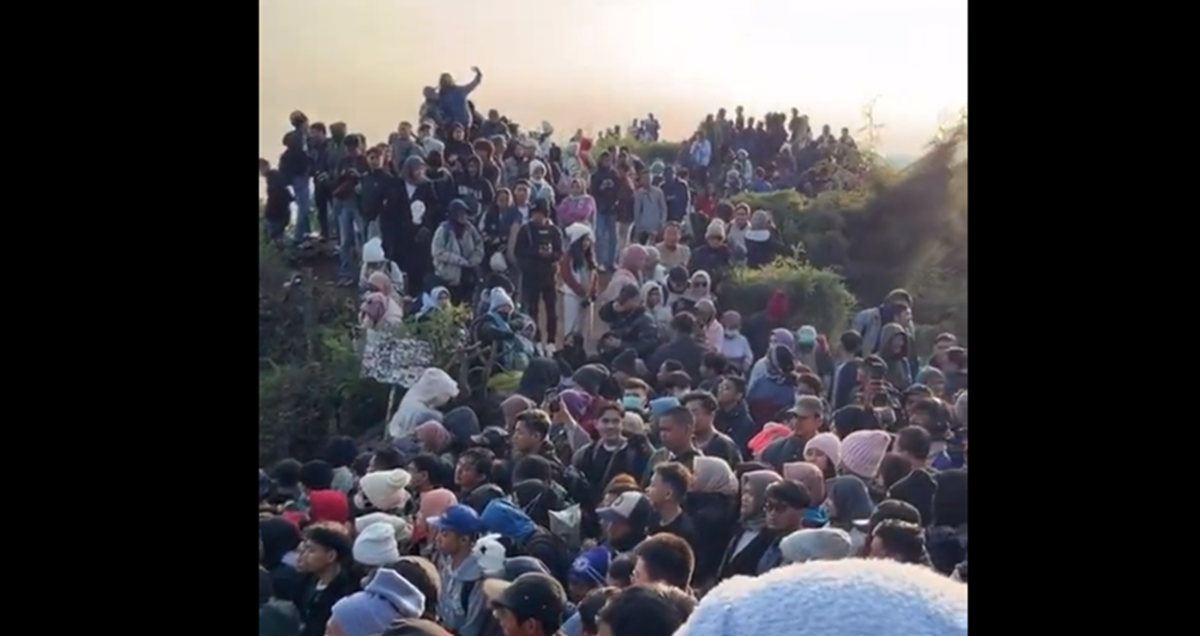 Keramaian pengunjung bukit Sikunir, Dieng (Sumber: video X pendaki lawas)