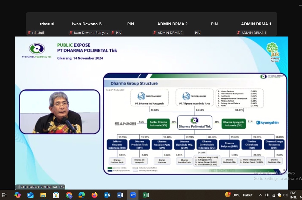 President Direktur Dharma Polimetal, Irianto Santoso, dalam paparan publik, Kamis (14/11). (tangkapan layar)