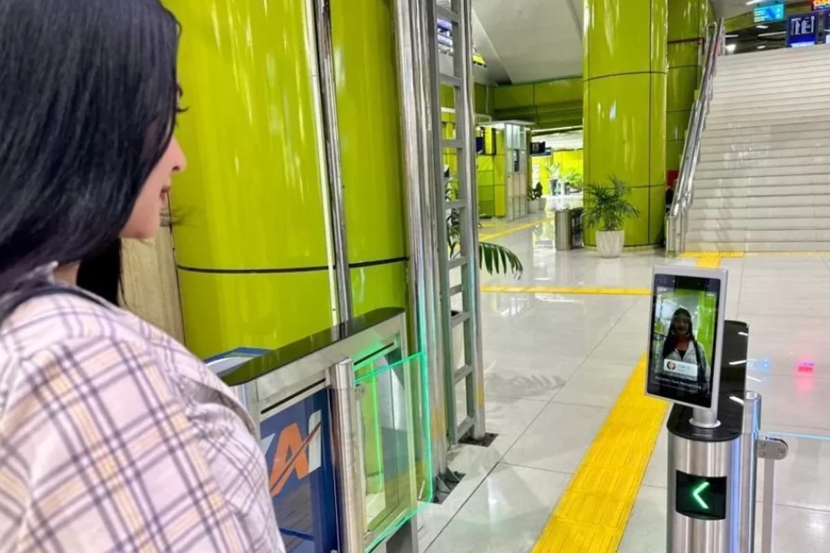 ILUSTRASI Calon penumpang meminda wajah dengan teknologi face recognition. (Dok. KAI)