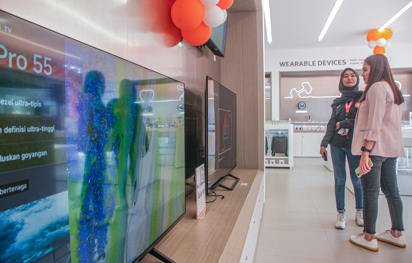 Pengunjung melihat produk Xiaomi saat pembukaan gerai baru di Erajaya Digital Complex, PIK 2, Tangerang, Jumat (27/10/2023). (Hanung Hambara/Jawa Pos)