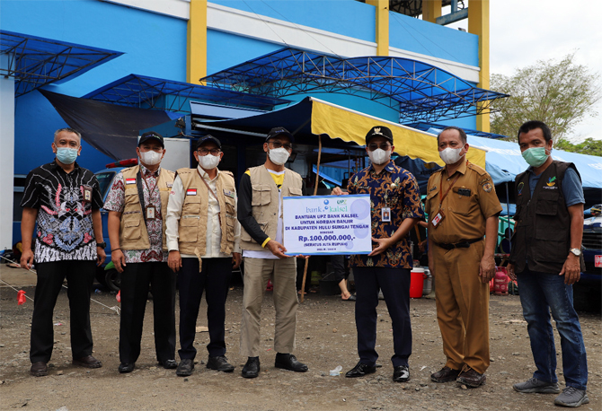 Bank Kalsel melalui Unit Pengumpul Zakat (UPZ)-nya menyalurkan bantuan dana untuk korban terdampak banjir di Kab. Hulu Sungai Tengah sebesar Rp100 juta. (Bank Kalsel for JawaPos.com)