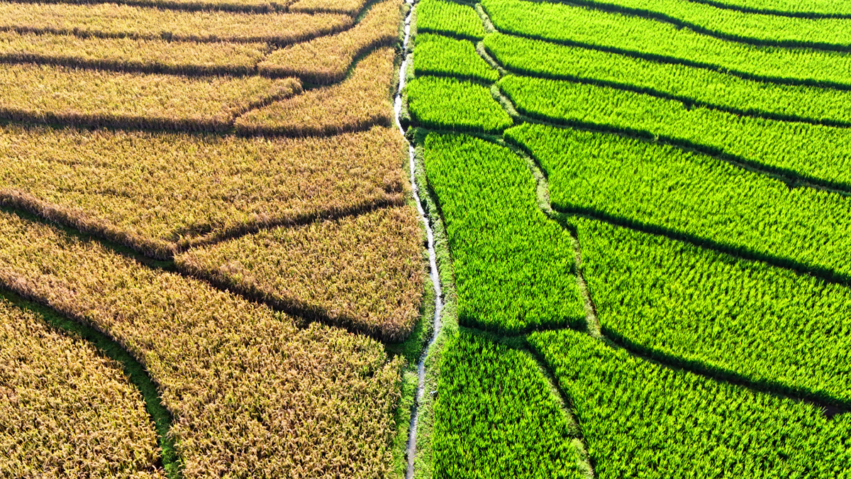 Foto aerial lahan pertanian di kawasan kaki Gunung Ciremai, Kuningan, Jawa Barat.