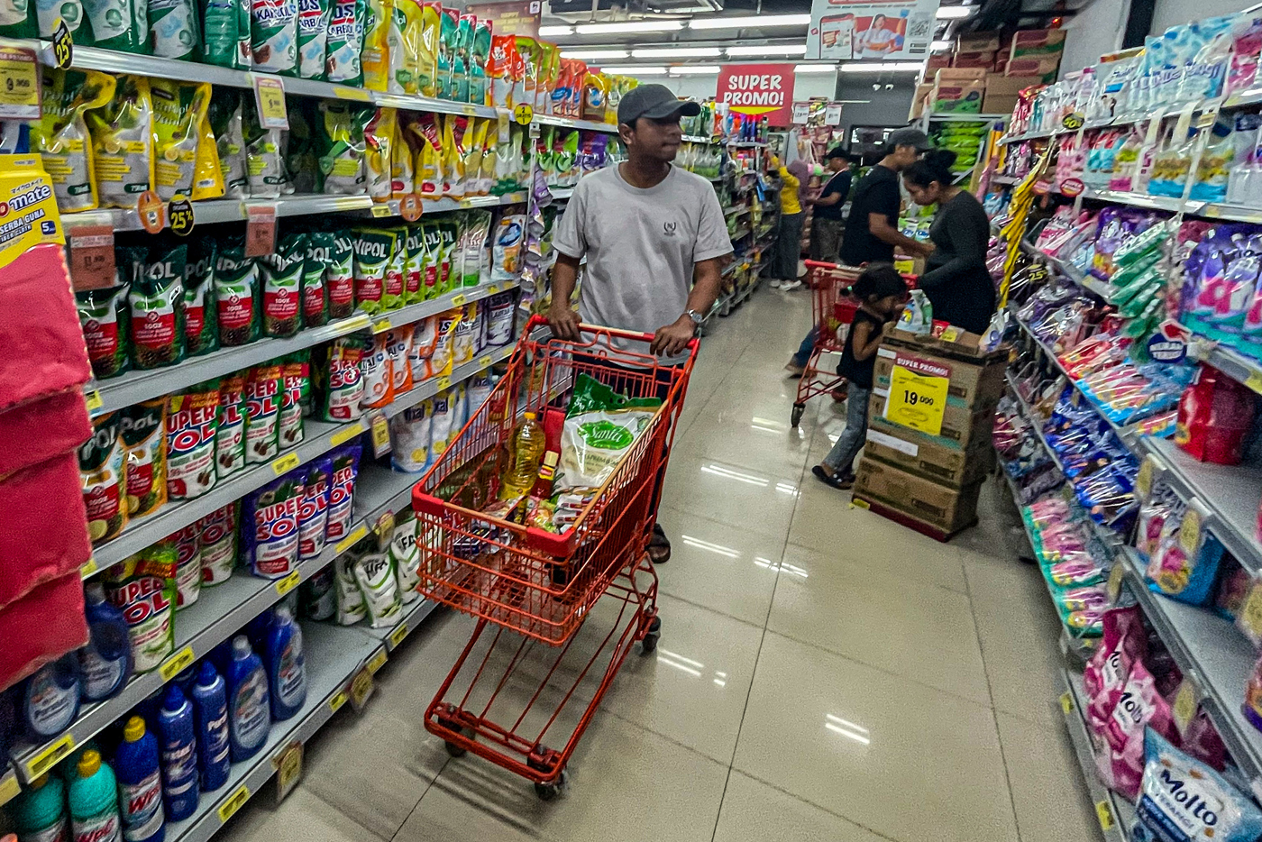 Pengunjung berbelanja di salah satu gerak ritel modern di kawasan Depok, Jawa Barat, Minggu (16/2/2025). (Salman Toyibi/Jawa Pos)