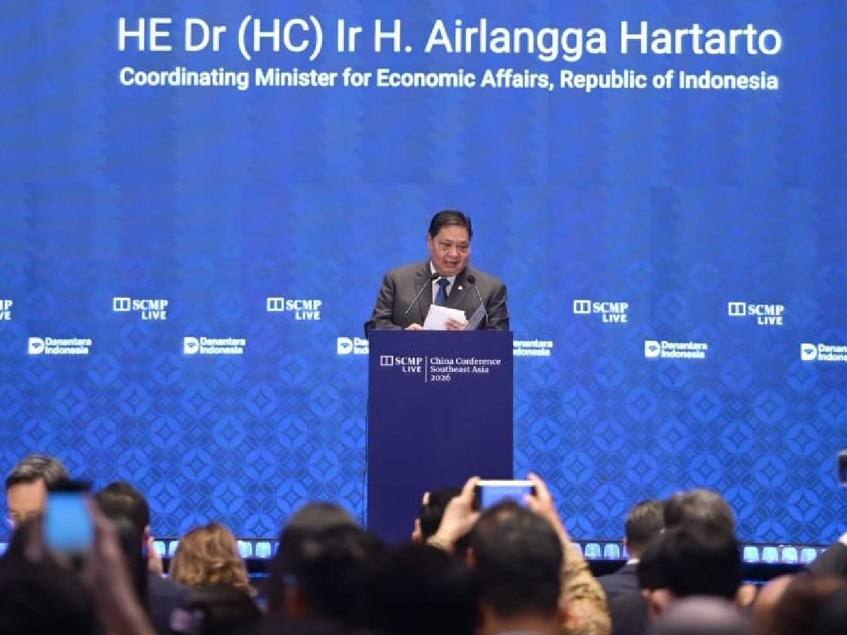 Menko Perekonomian Airlangga Hartarto saat berbicara dalam acara China Conference: Southeast Asia 2026 yang digelar South China Morning Post dan Kadin Indonesia di Jakarta, Selasa (10/2/2026).