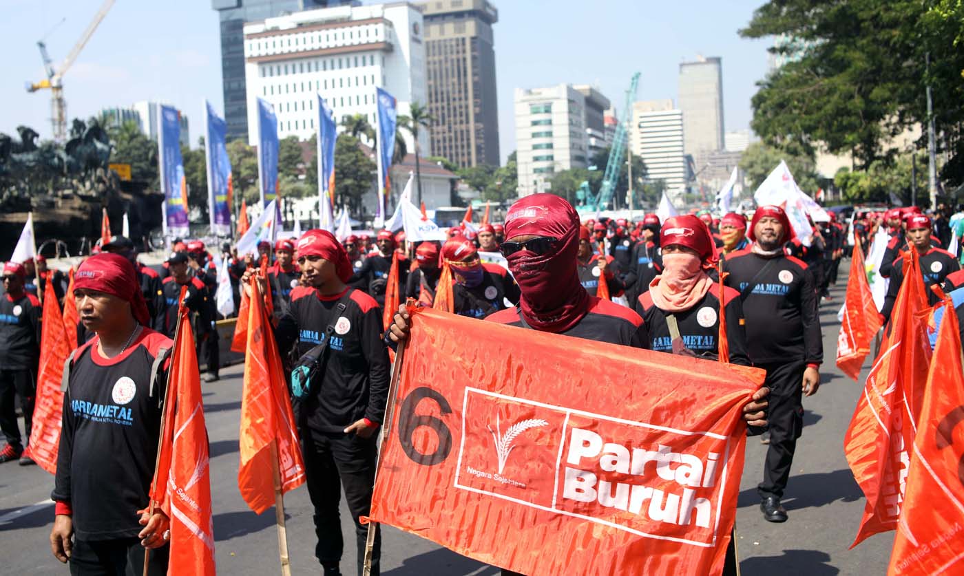 Presiden Partai Buruh Said Iqbal menyampaikan pidatonya dalam peringatan Tiga Tahun Kebangkitan Klas