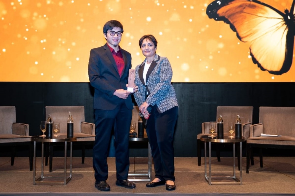 Muchtazar, Head of Sustainability Nickel Industries (kiri) bersama dengan Dr Nisha Kohli (kanan) dari CorpStage pada saat pemberian penghargaan di ajang ESG World Summit dan GRIT Awards. (istimewa)