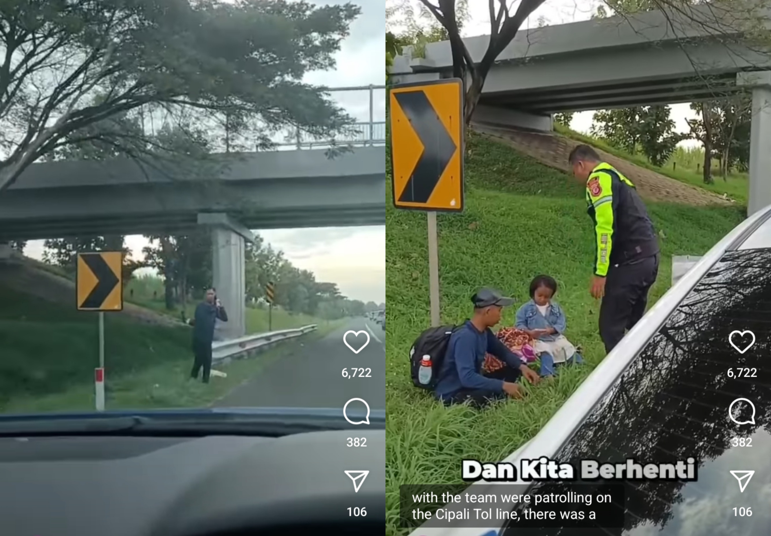 Viral polisi bantu pemudik yang ditelantarkan oleh PO ALS. (Instagram/Polres Subang).