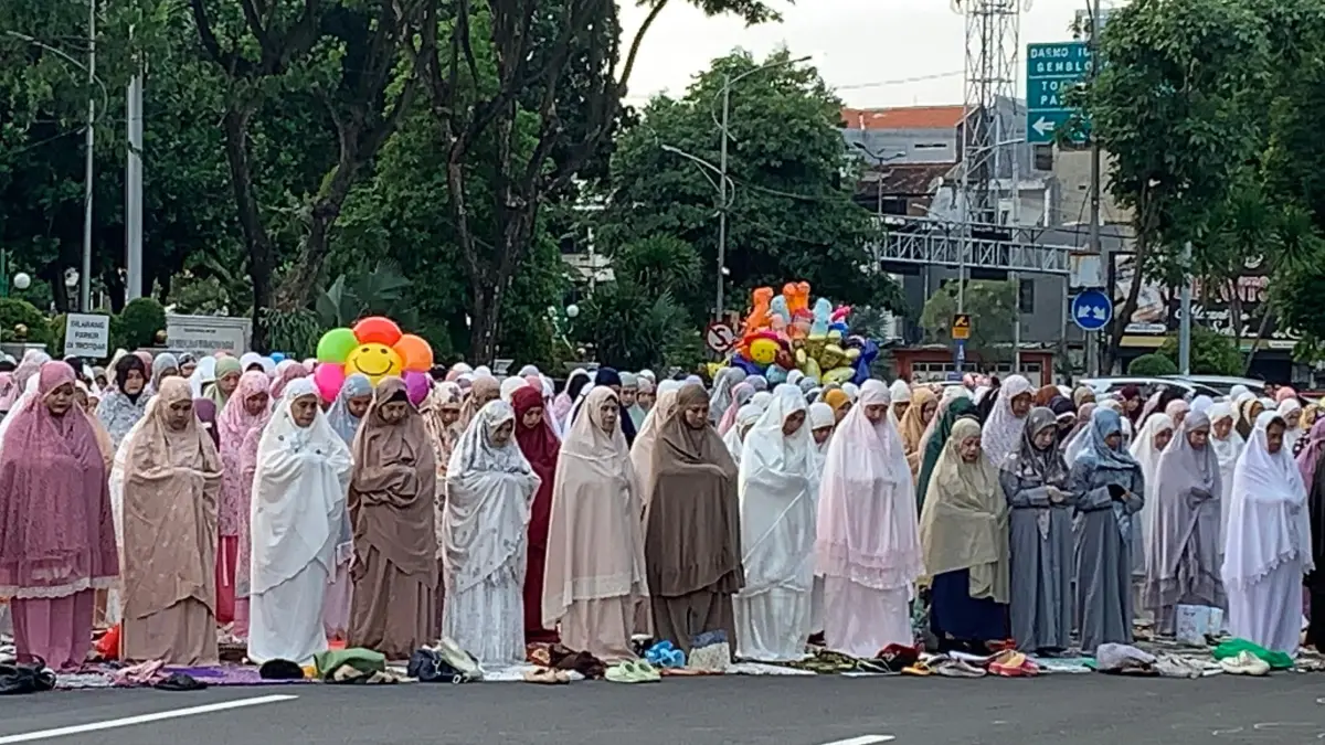JawaPos.com - Suasana khidmat begitu terasa di Jalan Pahlawan, Surabaya, saat ribuan umat Islam dari Muhammadiyah berkumpul untuk menunaikan Shalat Idulfitri 1447 Hijriah pada Jumat pagi (20/3).