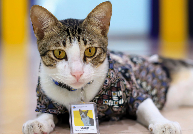 Soleh, kucing di KPP Pratama Serpong Jabatan Penyuluh Ahli Meow. (Hanung Hambara/Jawa Pos)