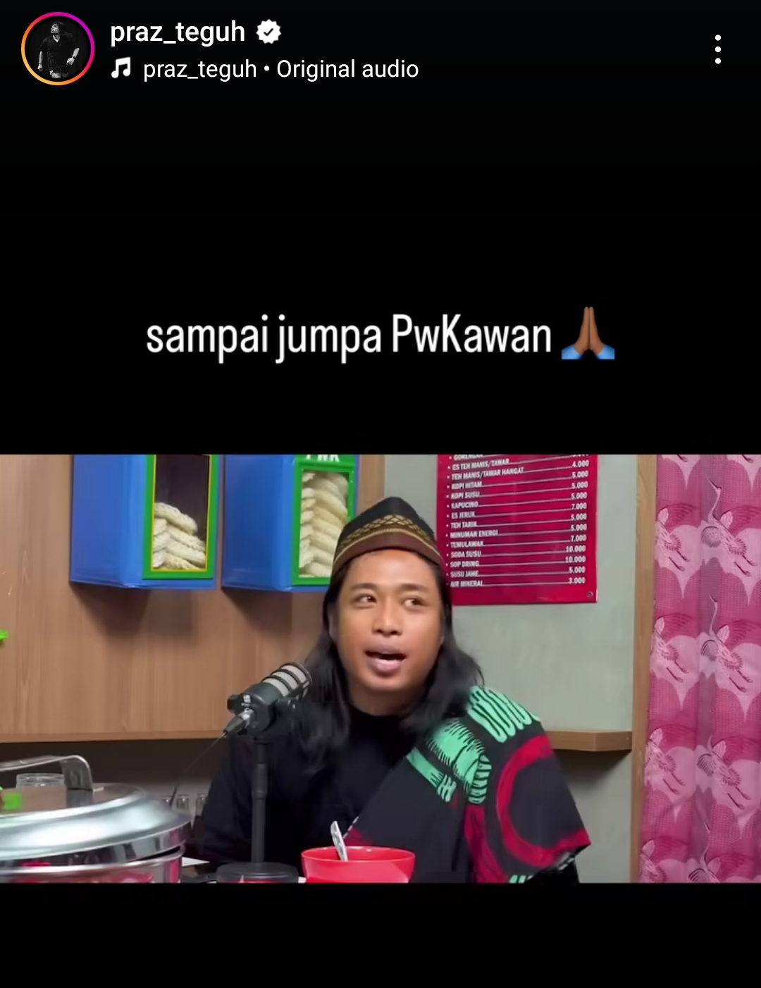 Praz Teguh pamit dari PWK melalui unggahannya di akun Instagram-nya.