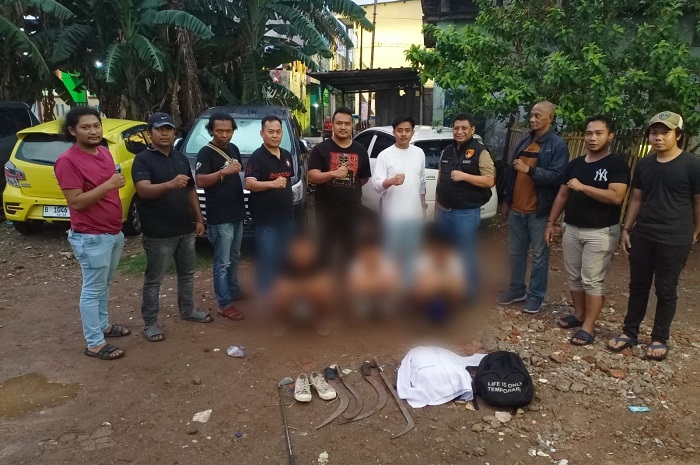 Polisi menangkap tiga remaja yang membawa senjata tajam.