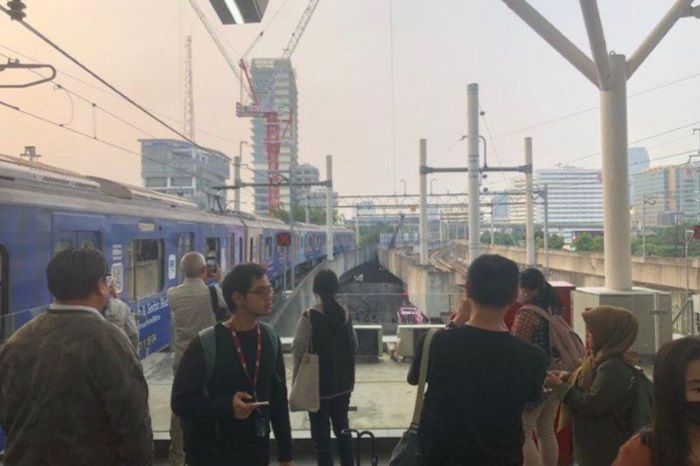 Suasana Stasiun MRT Jakarta ASEAN usai insiden jatuhnya material dari kegiatan konstruksi di area Gedung Kejaksaan Agung, Jakarta, Kamis (30/5).