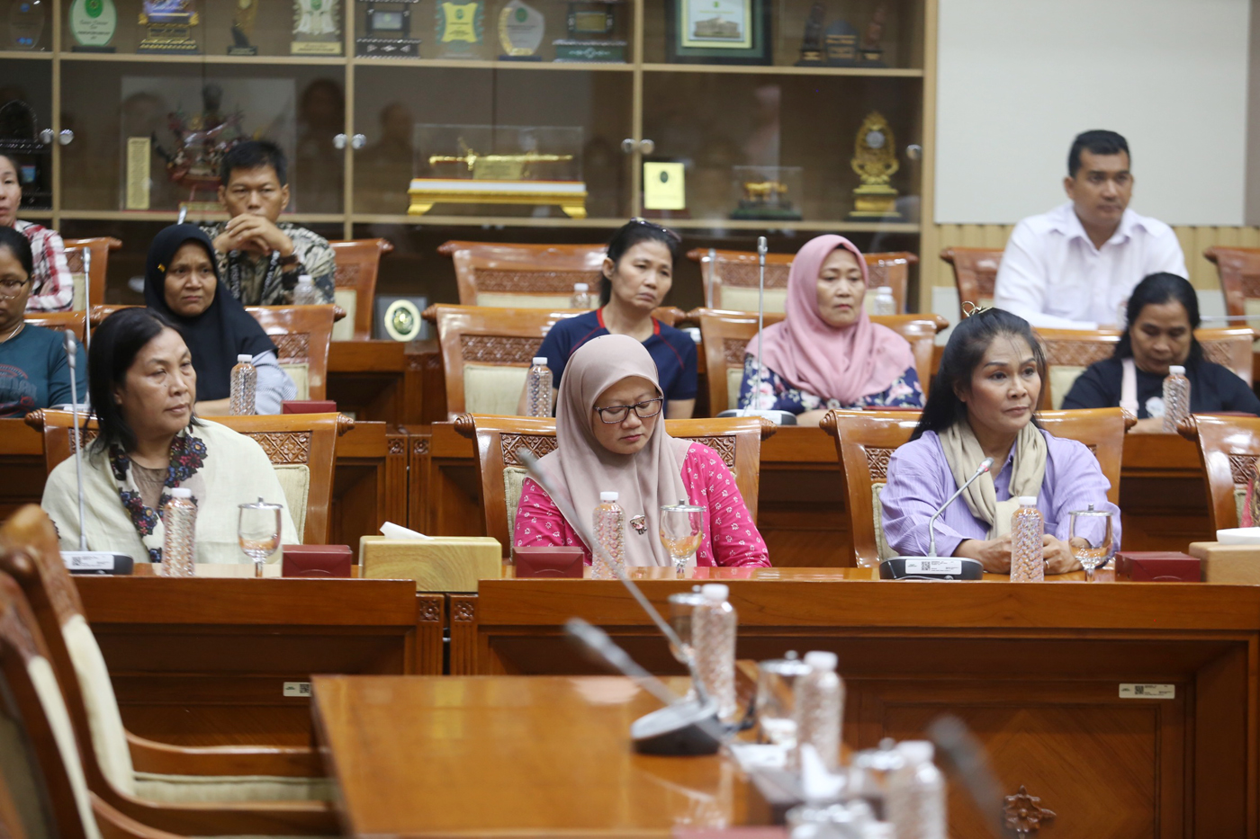 Sejumlah mantan pemain sirkus Oriental Circus Indonesia (OCI) mengikuti rapat dengar pendapat umum (RDPU) dengan Komisi III DPR di Kompleks Parlemen, Senayan, Jakarta, Senin (21/4/2025). (Dery Ridwansah/ JawaPos.com)