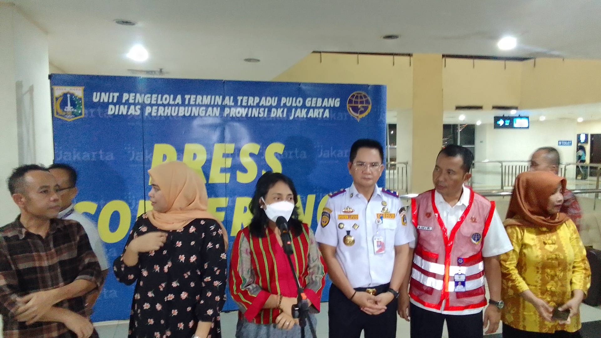 Menteri PPPA I Gusti Ayu Bintang Darmawati (tengah), Kepala Dishub DKI Jakarta Syafrin Liputo (kanan) dan Ketua KPAI Ai Maryati Solihah, saat berkunjung ke Terminal Terpadu Pulo Gebang.