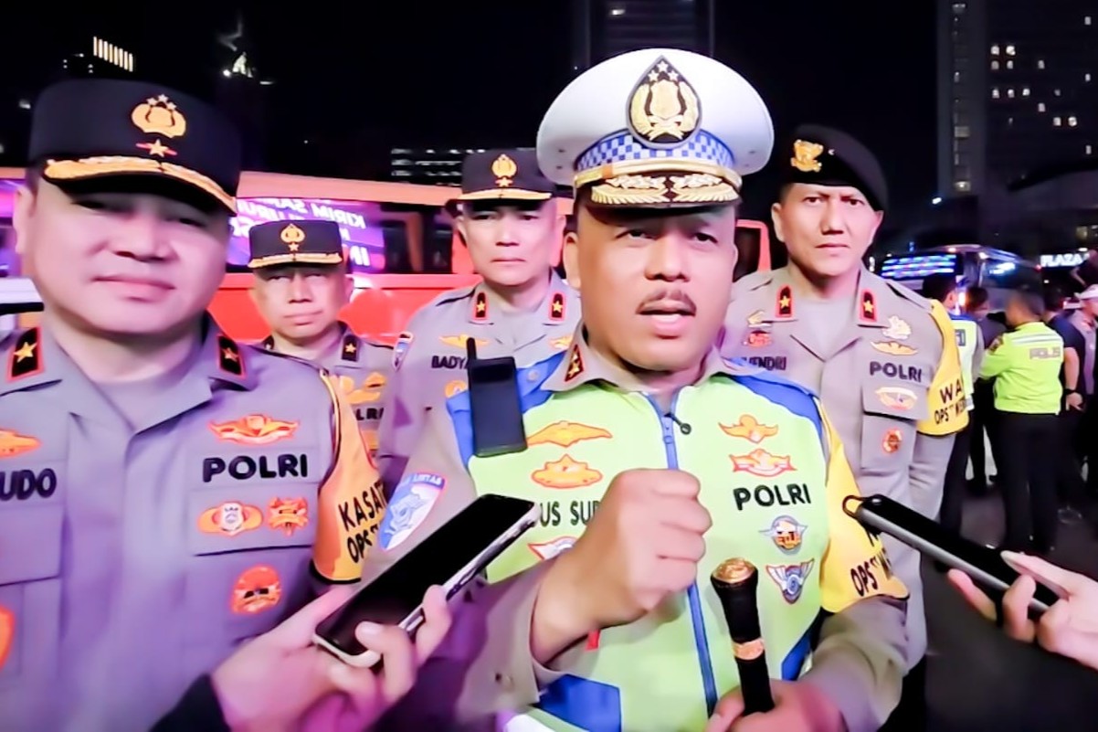 Kakorlantas Polri Irjen Agus Suryonugroho menyampaikan situasi dan kondisi lalu lintas pasca acara puncak peringatan HUT ke-80 RI di Jakarta kembali normal. (Polri)