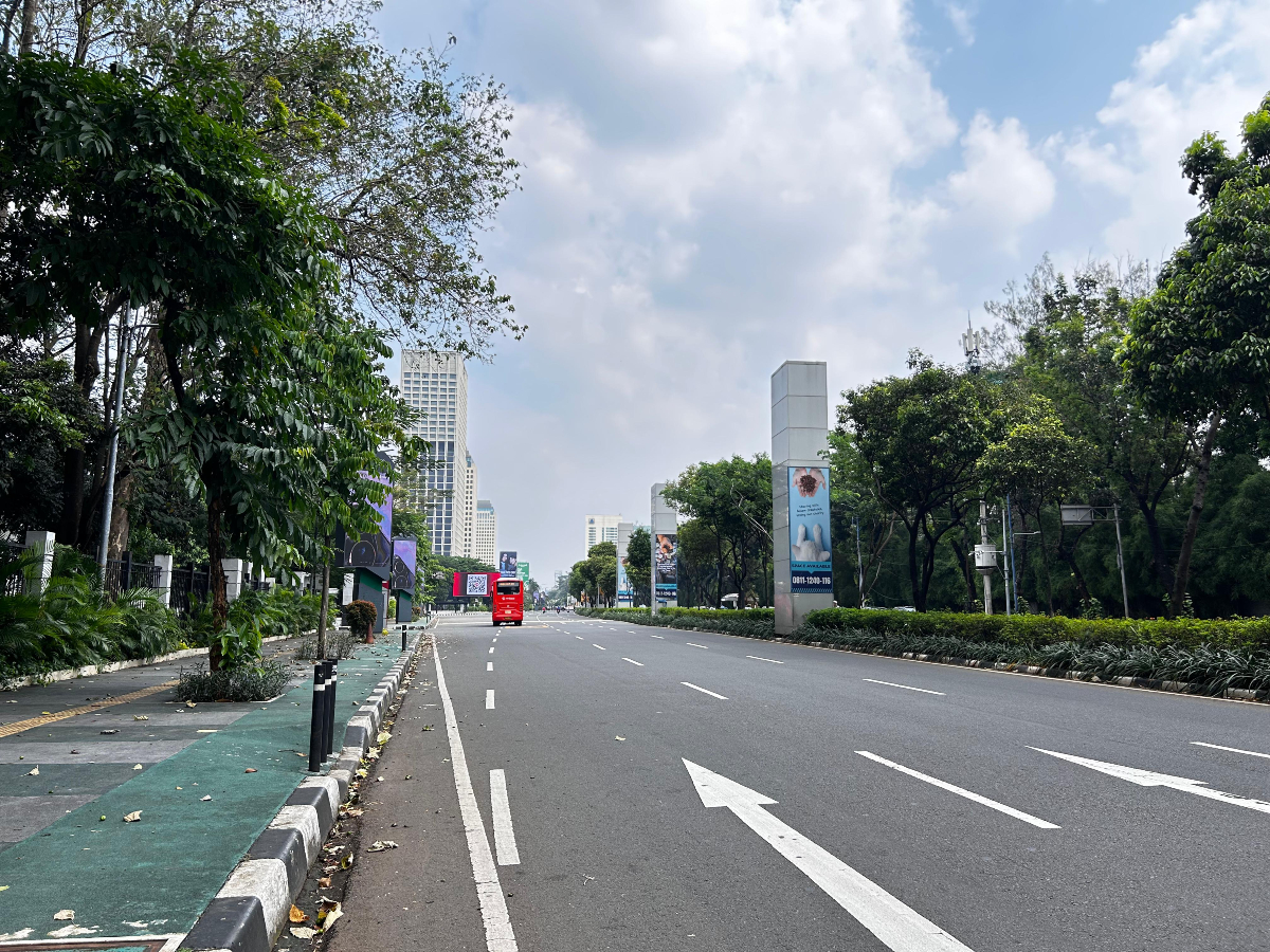 Jakarta terapkan WFH dan WFA selama dua hari. Alhasil jalanan terlihat lengang. (mia/ Jawa Pos)