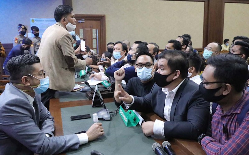 Suasana sidang Penundaan Kewajiban Pembayaran Utang (PKPU) yang dihadiri ratusan nasabah dengan agenda proses verifikasi piutang di Pengadilan Niaga Jakarta Pusat, Jumat,( 19/6). Kasus gagal bayar Koperasi Simpan Pinjam (KSP) Indosurya Cipta atau Indosury