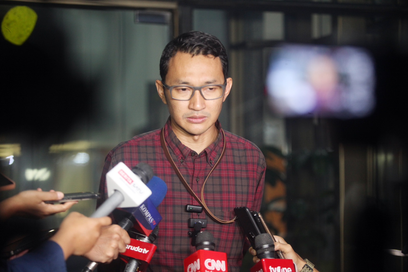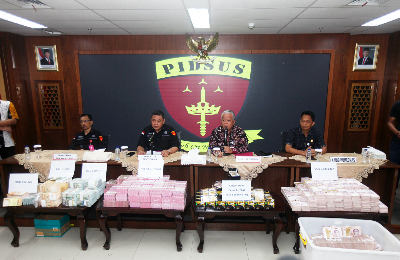 Direktur Penyidikan Jaksa Agung Muda Bidang Tindak Pidana Khusus (Dirdik Jampidsus) Kejagung Abdul Qohar Bersama Kepala Pusat Penerangan Hukum (Kapuspenkum) Kejagung dan jajaran petinggi Kejagung lainnya saat menggelar konferensi pers kasus suap yang menj