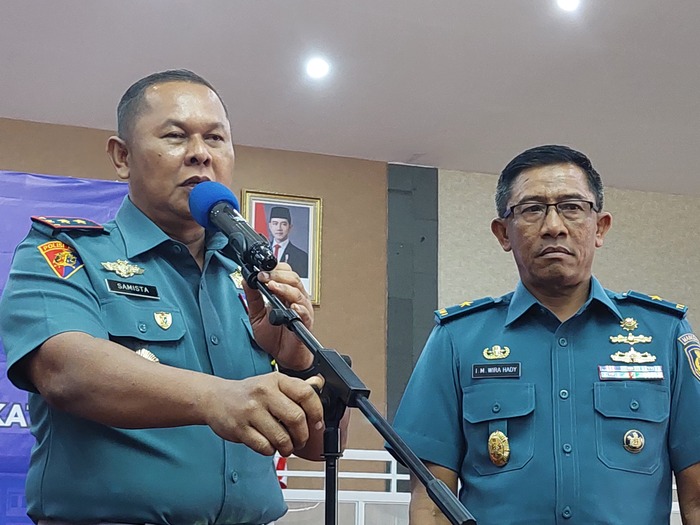 Komandan Puspomal Laksamana Muda TNI Samista membeber perkembangan penanganan kasus-kasus hukum yang melibatkan personel. (Syahrul Yunizar/JawaPos.com).