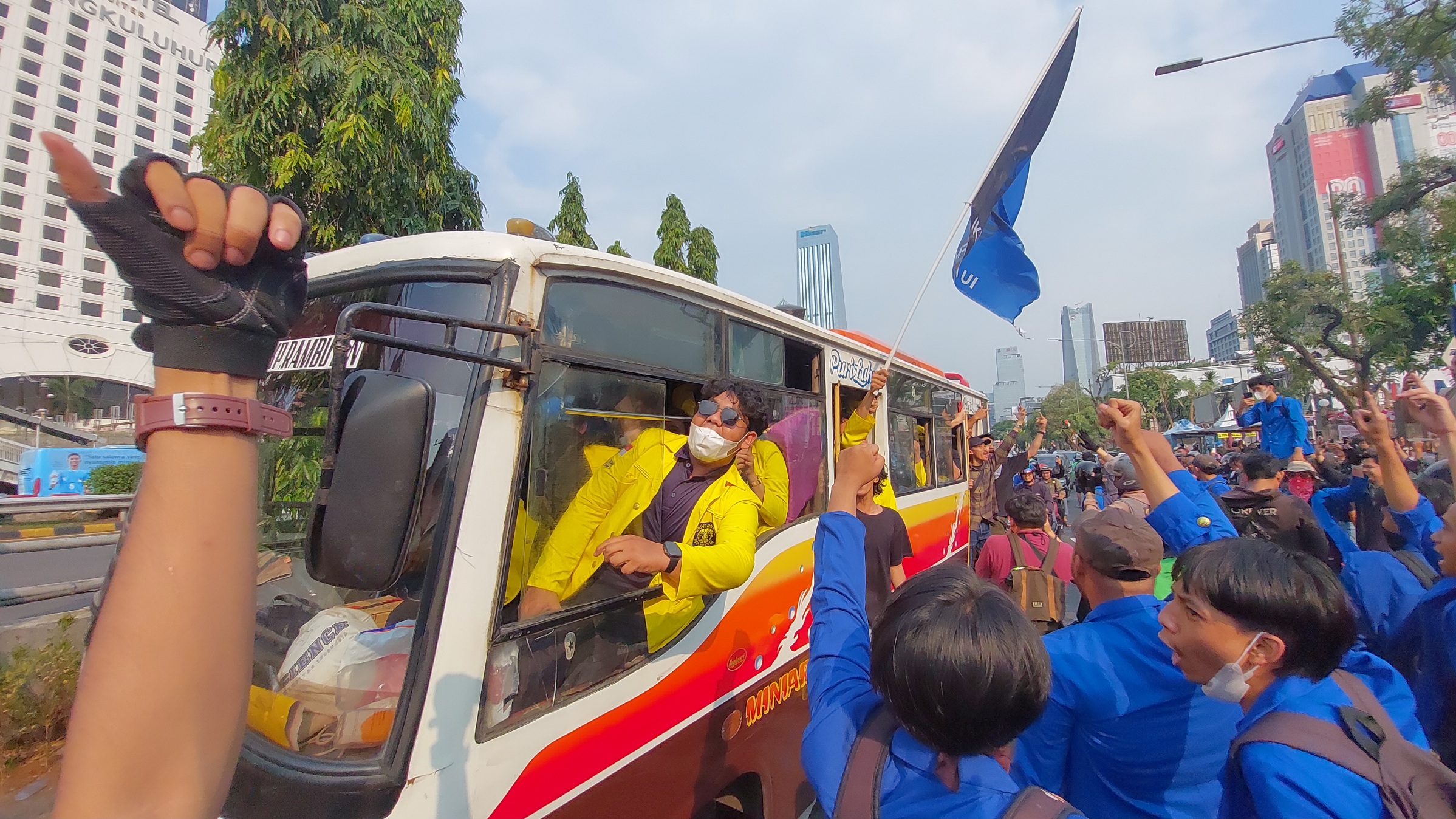 Ratusan mahasiswa mulai menggelar aksi di depan Polda Metro Jaya, Jumat (29/8). (Ryandi Zahdomo/JawaPos.com)