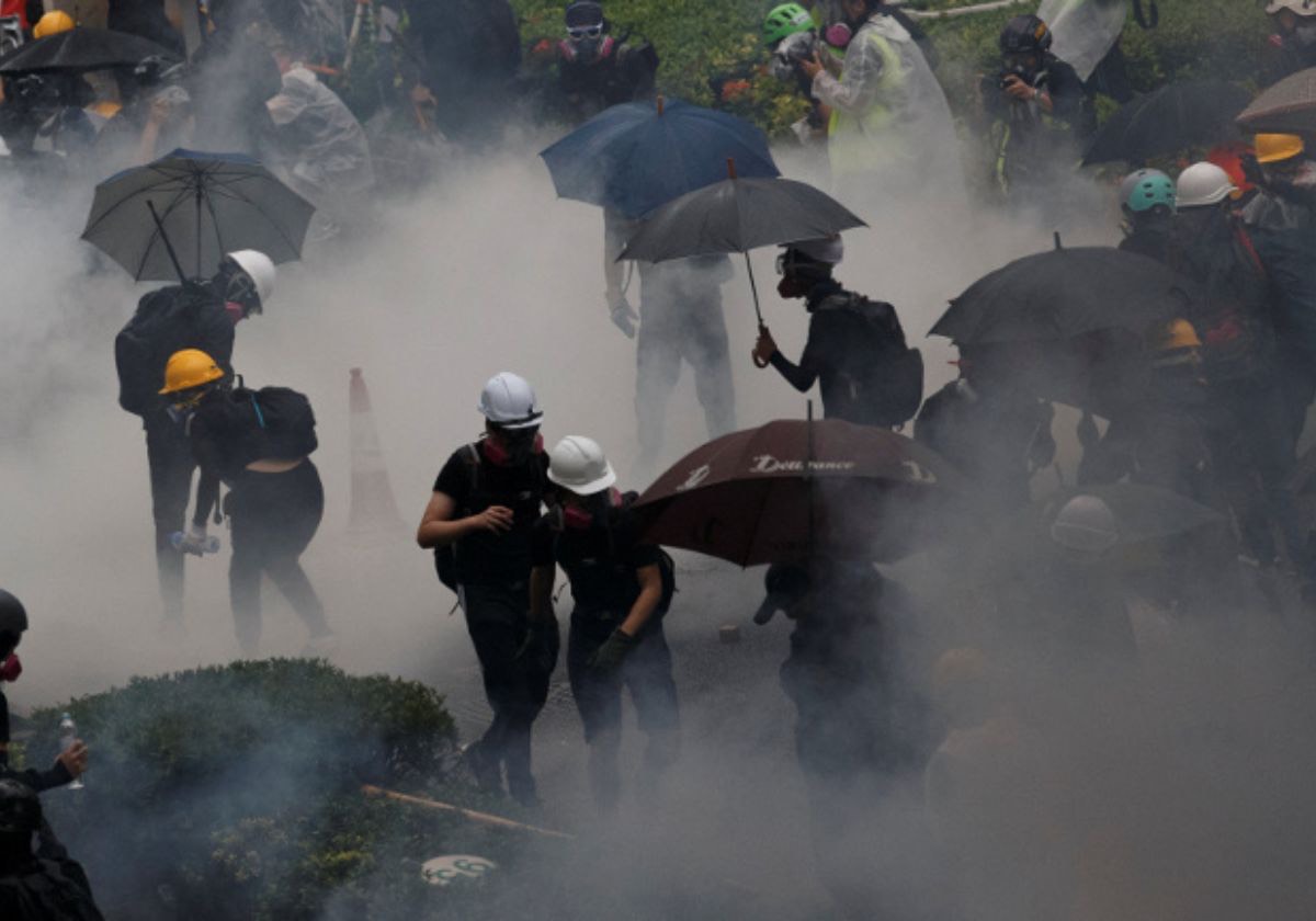 Asap gas air mata di tengah demo. (Reuters)
