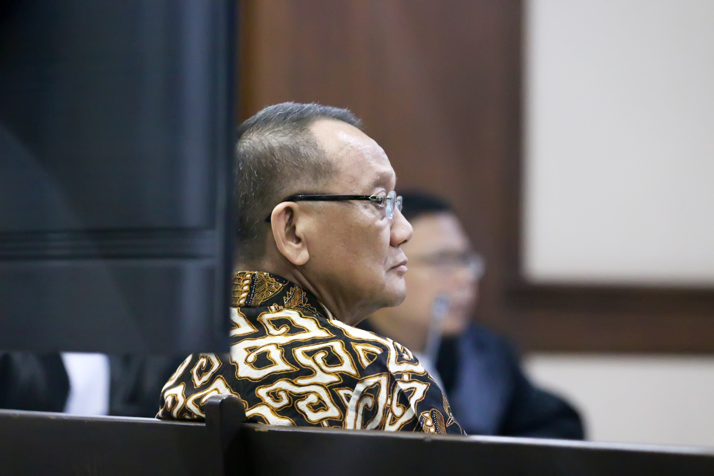 Mantan narapidana kasus suap penanganan perkara di Mahkamah Agung (MA) Nurhadi berjalan mengikuti sidang dengan agenda pembacaan dakwaan oleh Jaksa Penuntut Umum di Pengadilan Tipikor, Jakarta, Selasa (18/11/2025). (Dery Ridwansah/ JawaPos.com)