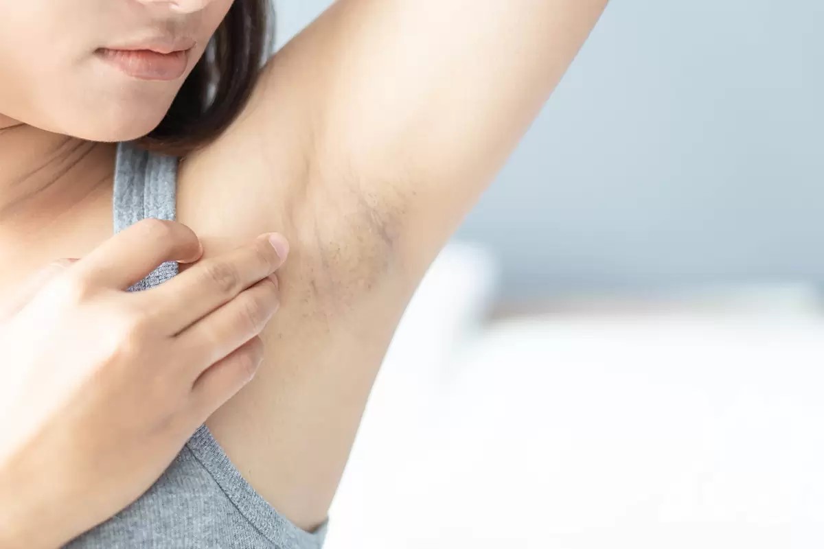 Ilustrasi pemakaian deodoran dalam jangka waktu lama mengakibatkan ketiak hitam.