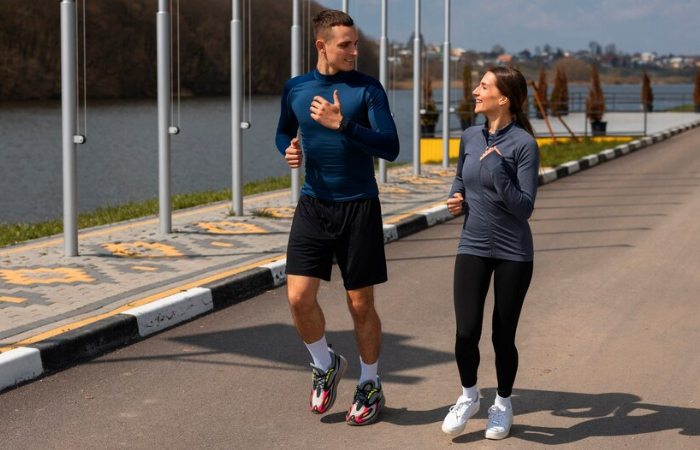 Ilustrasi dua orang sedang olahraga jalan.