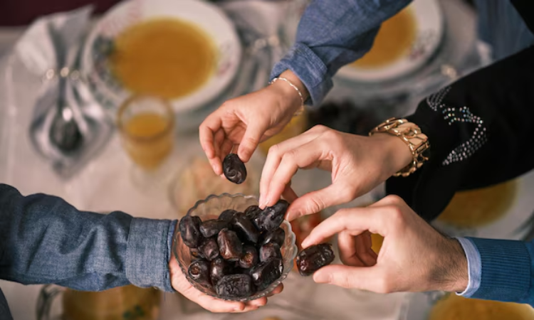 Berbuka puasa bersama keluarga dengan menyantap kurma. (freepik)