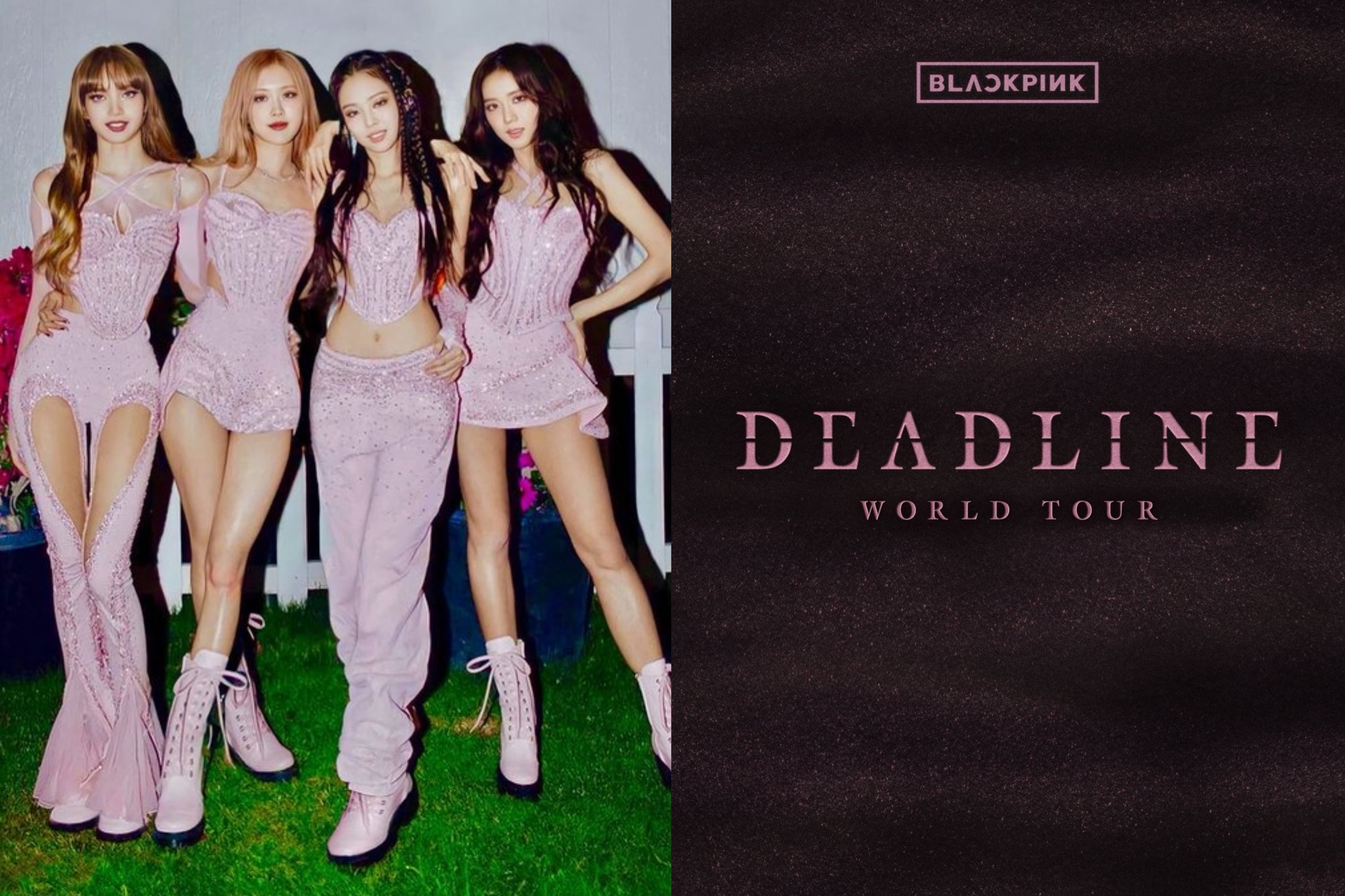 BLACKPINK dan poster tur dunianya yang bertajuk ‘Deadline’ di tahun 2025 yang akan dimulai pada bulan Juli. (Allkpop)