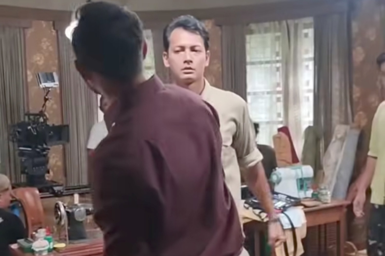 Momen Fedi Nuril menonjok Oka Antara di lokasi syuting. (Instagram @baimwong)