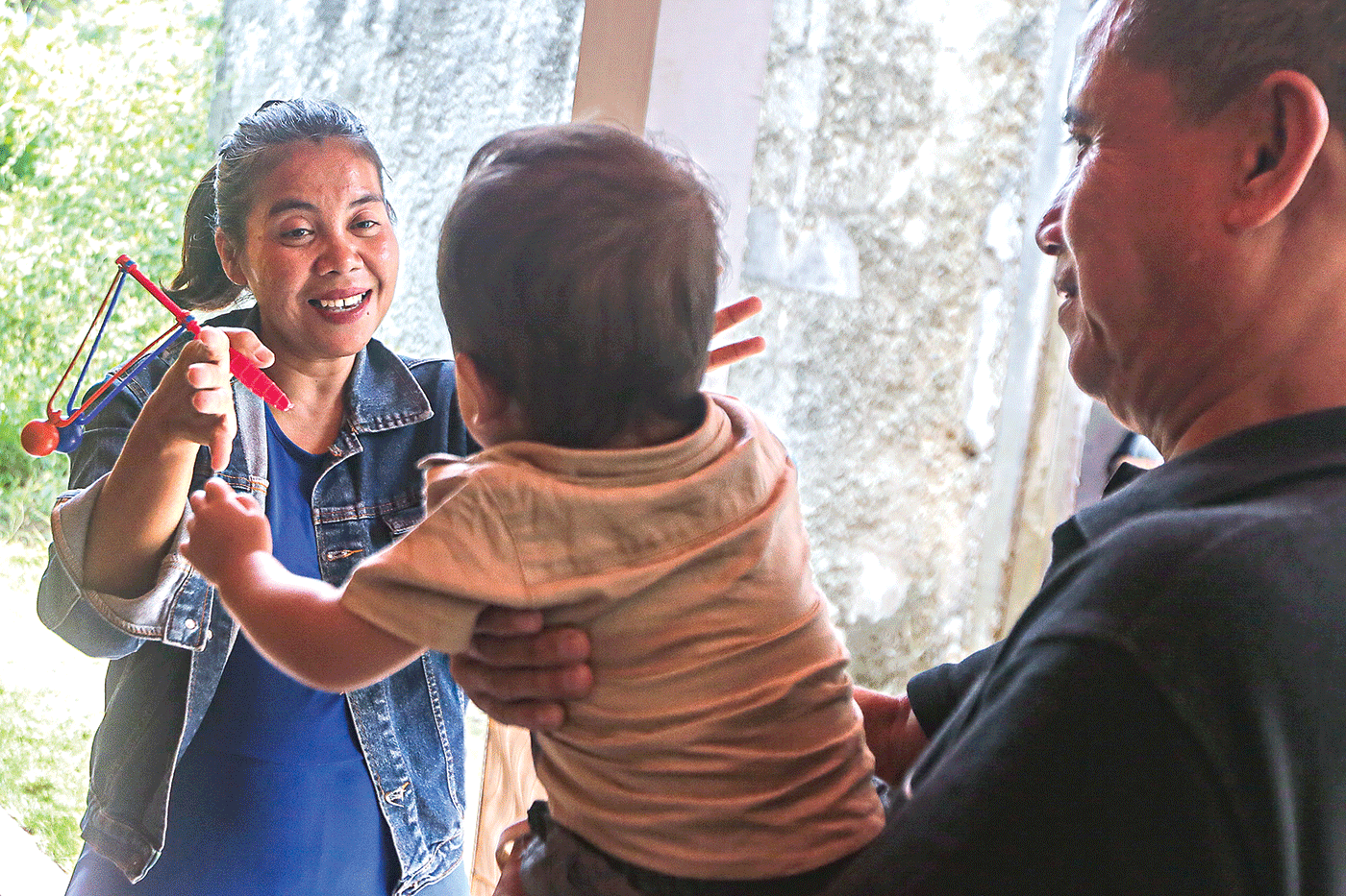 DARAH DAGING: Siti Mauliah bercanda dengan Bayi El yang digendong Tabrani saat disambangi Jawa Pos di rumahnya pada Kamis (14/9).