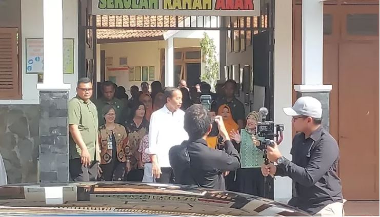 Presiden Jokowi saat kunjungi SDN 111 Tirtoyoso, Solo, tempatnya bersekolah dulu, Sabtu (12/10). (ANTONIUS C/RADAR SOLO)