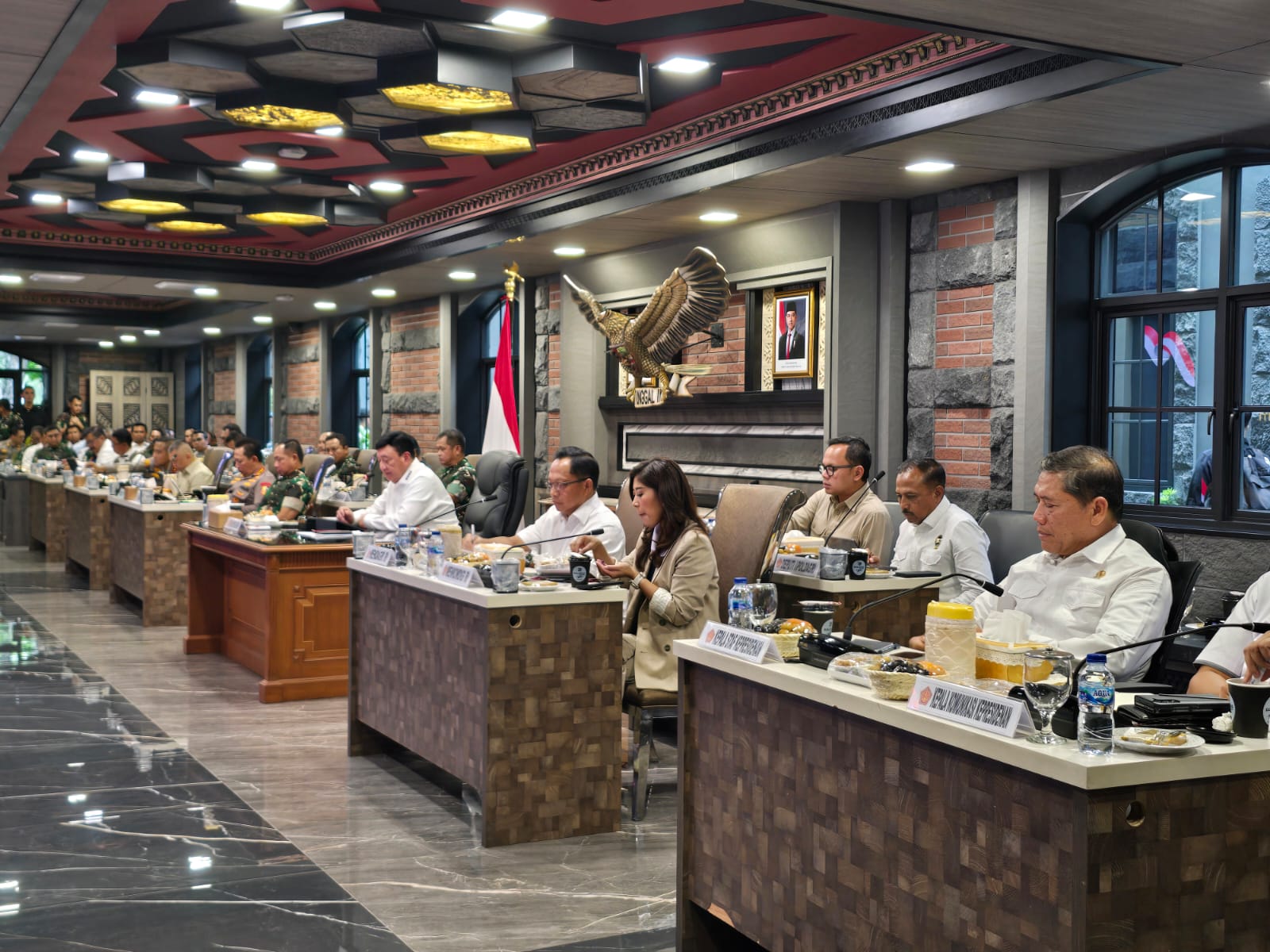 Panglima TNI Jenderal TNI Agus Subiyanto memonitor pengamanan pilkada serentak 2024 bersama para pejabat lainnya. (Humas Kemenko Polkam)