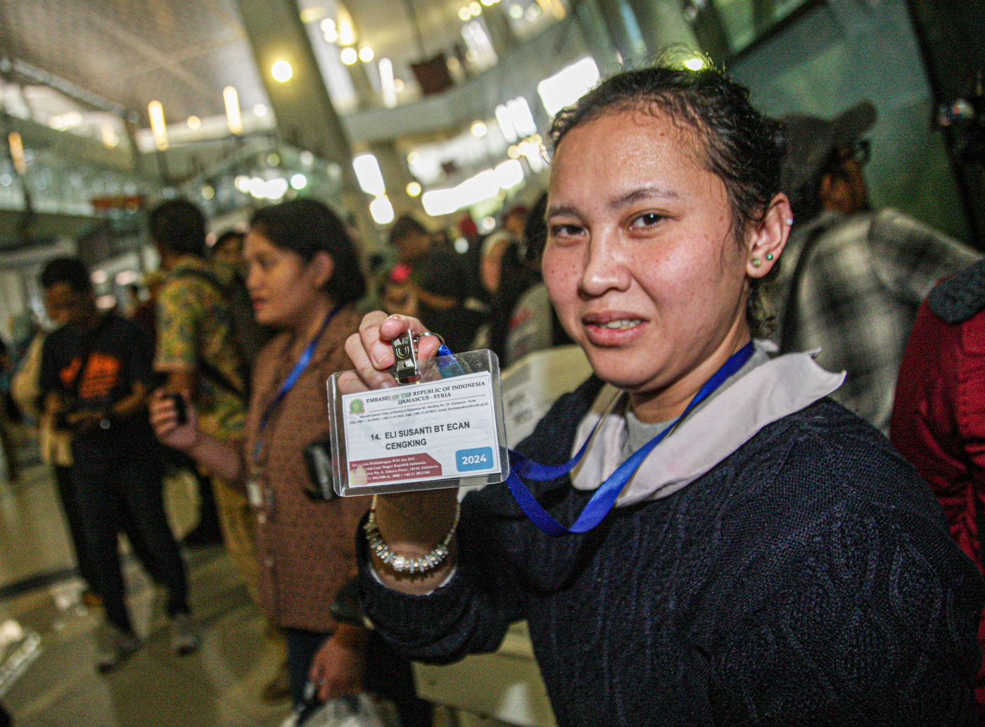 Sejumlah Pekerja Migran Indonesia (PMI) dari Suriah tiba di Terminal 3, Bandara Soekarno-Hatta, Tangerang, Kamis (12/12/2024). (Hanung Hambara/Jawa Pos)