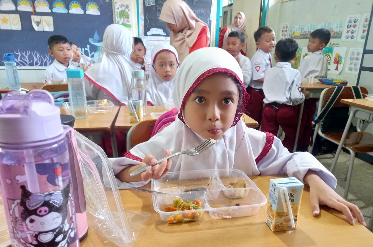 Makan Bergizi Gratis di SD Taquma Surabaya. (Novia Herawati/JawaPos.com)