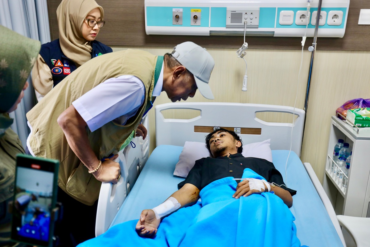 Wakil Menteri Sosial (Wamensos) Agus Jabo Priyono meninjau langsung lokasi terjadinya bencana longsor yang menerjang Kabupaten Pekalongan dan banjir bandang Grobogan, Jawa Tengah. (Z. Hikmia/Jawapos)